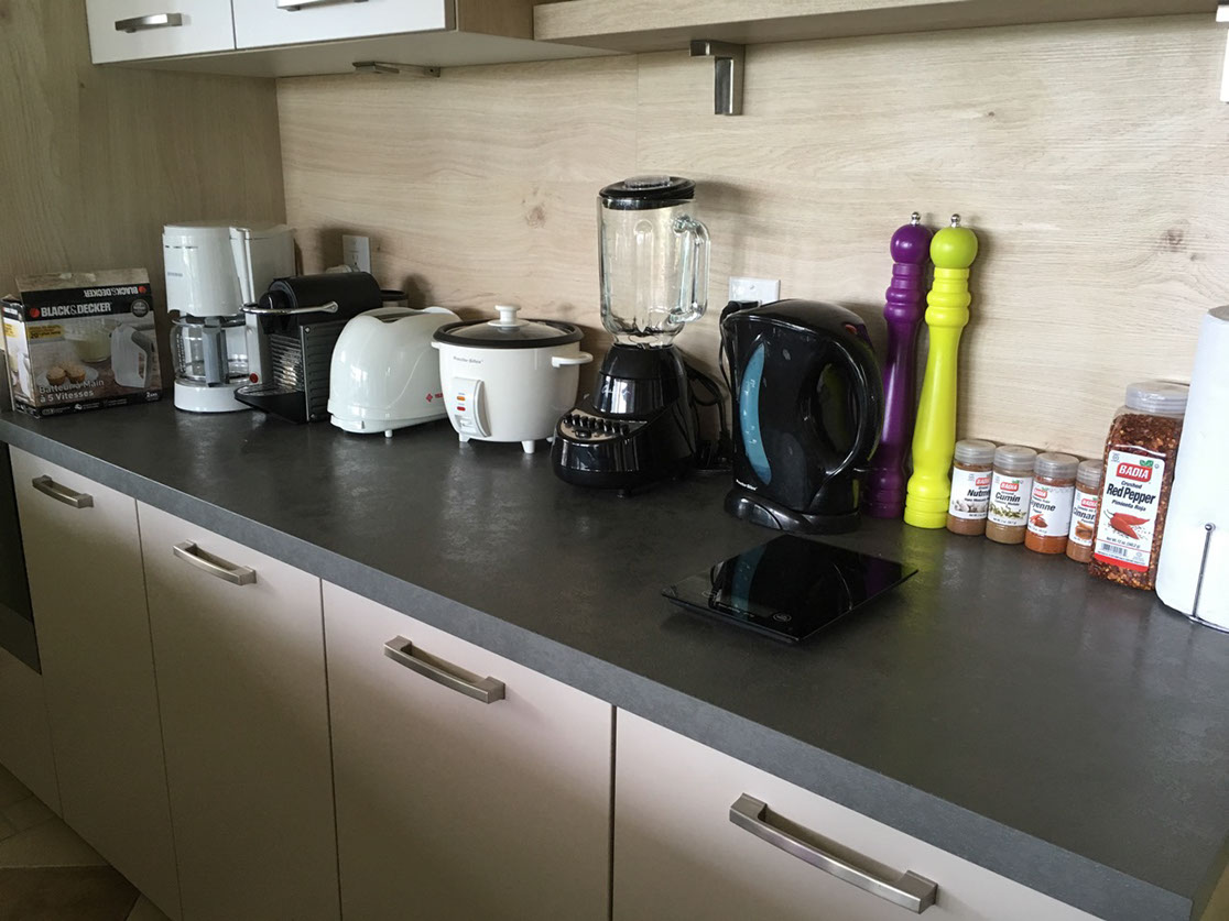 - Une nouvelle cuisine toute neuve, avec un grand réfrigérateur, une machine à glaçons et un congélateur, 4 plaques vitrocéramiques, un four à micro-ondes, un four à chaleur tournante, un grand lave-vaisselle, une bouilloire, une machine à café Nespresso ainsi qu'une machine à café filtre est prévue pour août 2017.